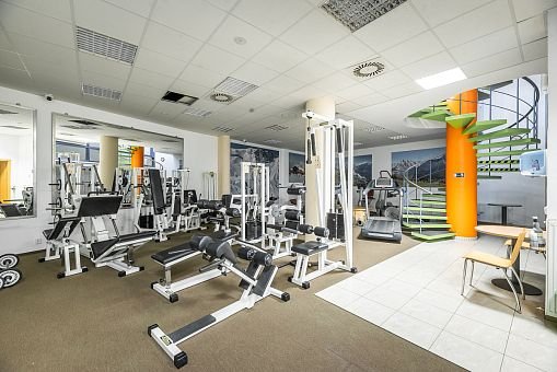 Fitness bude zrušeno, budou zde nově příčky a vzniknou 2 privátní zóny, každá s velkou vířivkou a saunou